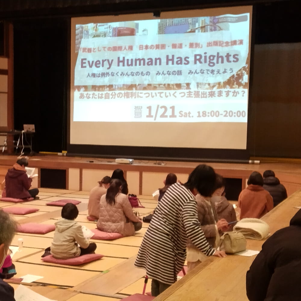The other is to inform Japanese people about international human rights, as well as the more basic question of what are human rights through lectures, talks, media coverage and publications.
