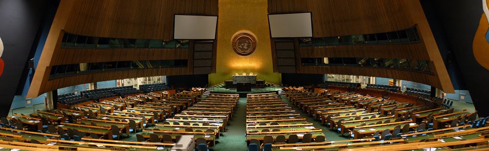 Image credit: Room of the United Nations General Assembly. Taken by Jérôme BLUM on 23 November 2006. Panoramic made from 3 photos.