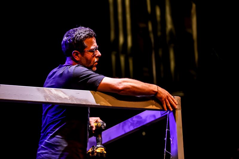 Construction technician in warehouse using tools