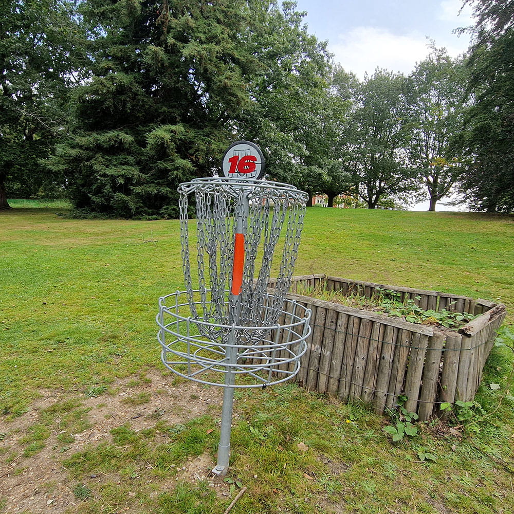 Tee Pad 16 (the shorter route), is located directly behind Basket 15.